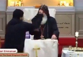 Un vídeo publicado en las redes sociales muestra el momento en el que el obispo Mar Mari Emmanuel fue atacado durante una misa.